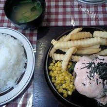 ハンバーグはSからLサイズまでありご飯は大盛やお代わりをしても同じ料金です。