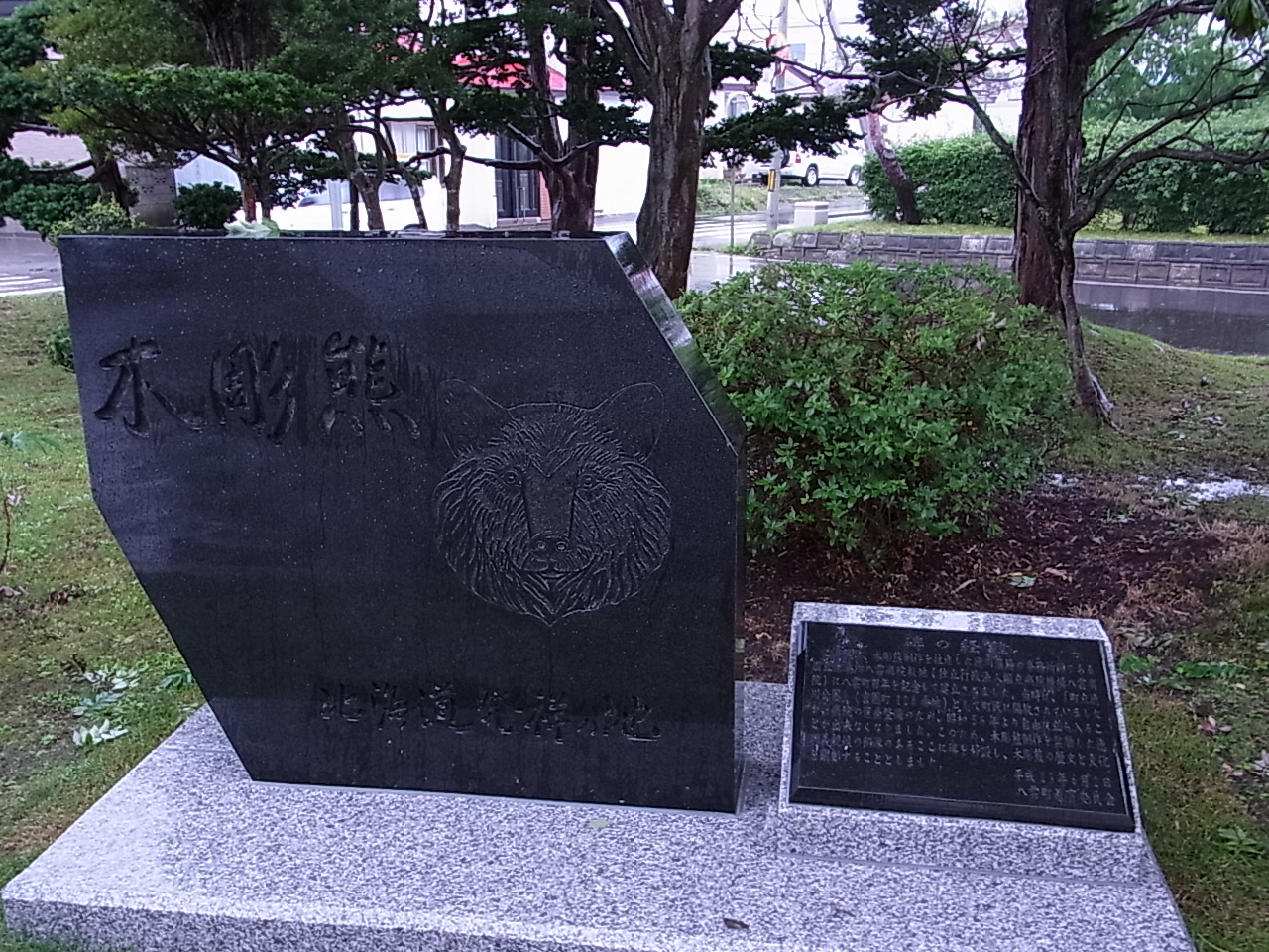 八雲町の木彫り熊の歴史と文化を顕彰する記念碑が、公民館敷地内の徳川義親胸像に隣接して建立されています。
