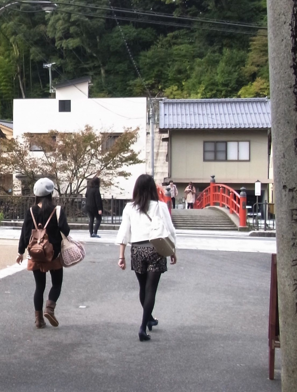 玉造温泉街の東端あたり、玉造湯神社の正面にかかる朱塗りのかわいい橋です。