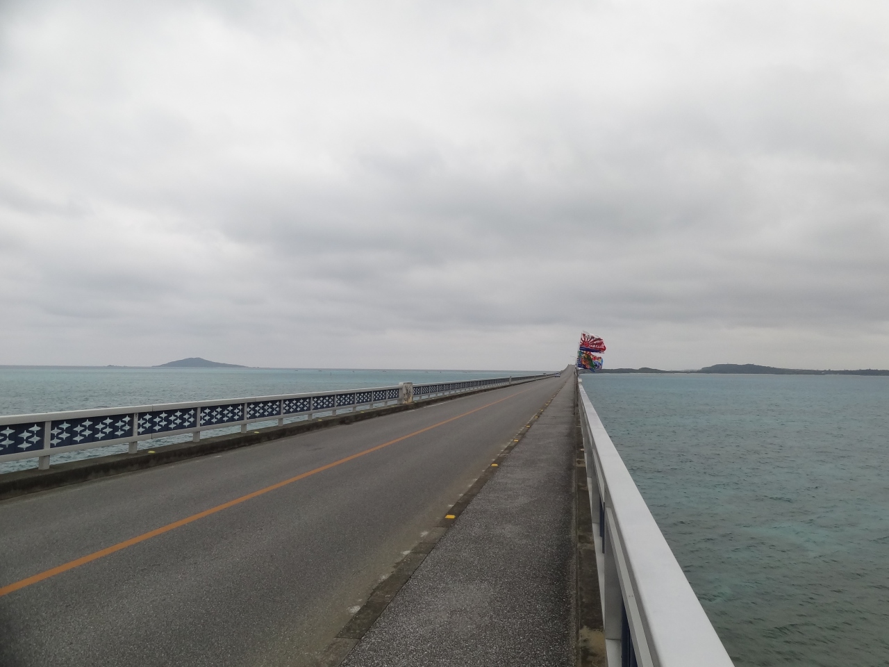 宮古島北の池間島と宮古島を結ぶ長い橋です。海の中の一本道!爽快です。