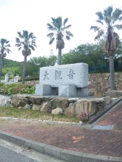 大観音は各地にありますが、ここ小豆島にも巨大な観音様があります。小高い丘の上にありますので余計に大きく感じます。遠くから見てもよく目立ちます。近くで記念写真を撮ると全身が入らないので看板だけで我慢する人もいます。
