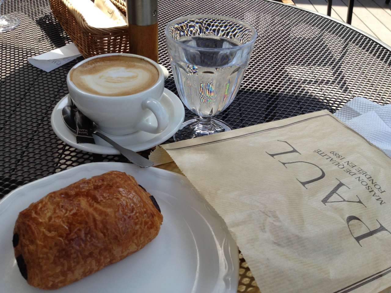 朝、軽くパンとコーヒーを食べるのに便利です。天気の良い日は外のテラス席でいただきます。ただし、目の前の道路の車通りも多いですが・・。ドリンクを頼むと、クロワッサンなど3種類から一つおまけがつきました。おいしかったです。
