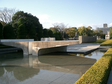 平和記念公園の中心にあるモニュメントで、原爆死没者慰霊碑と平和の灯の延長線上に原爆ドームがあります。