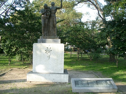 戦争で亡くなった方の慰霊のために造られた「子供を抱いた若い夫婦の像」です。