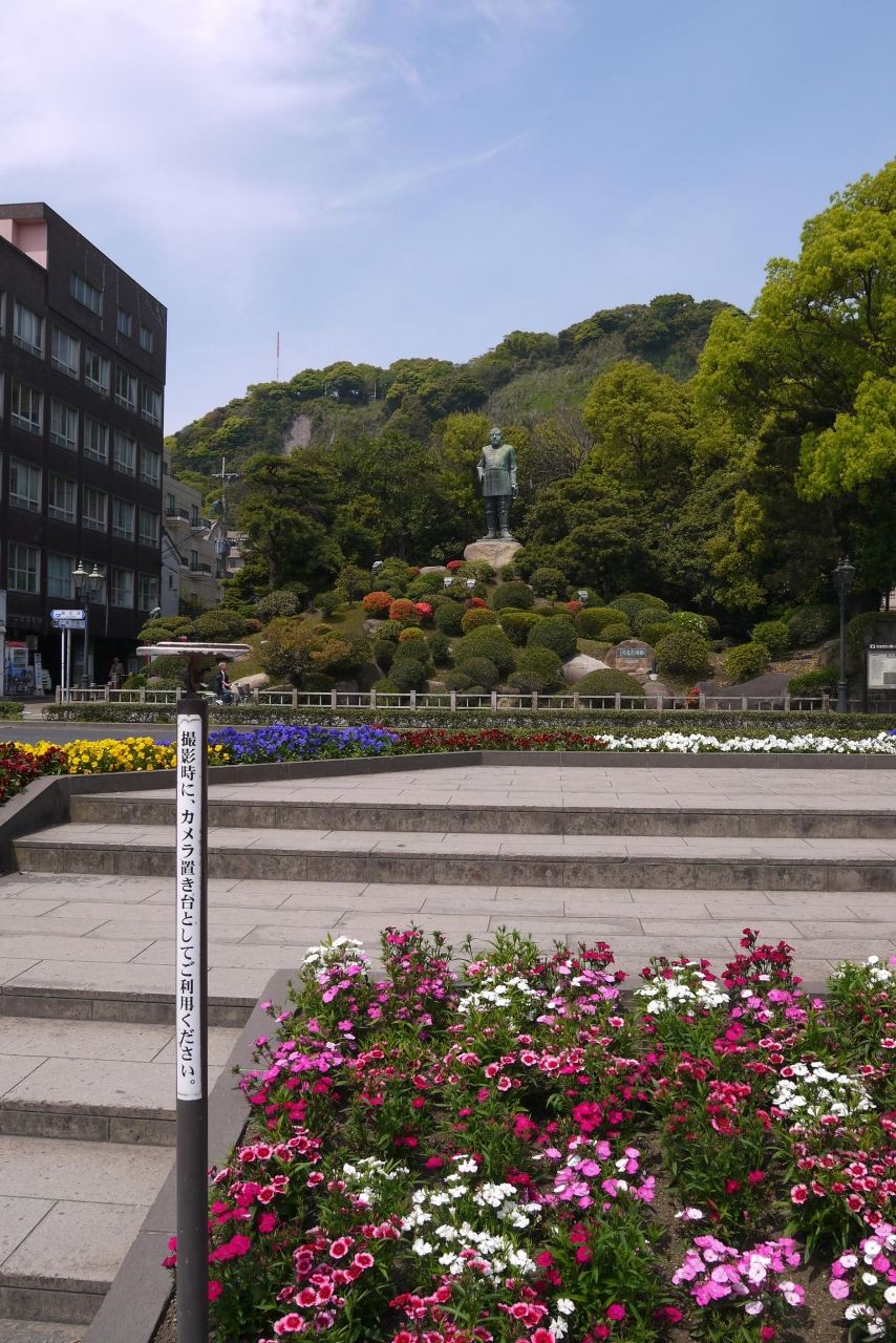 城山公園のふもとにある西郷どんの銅像。
