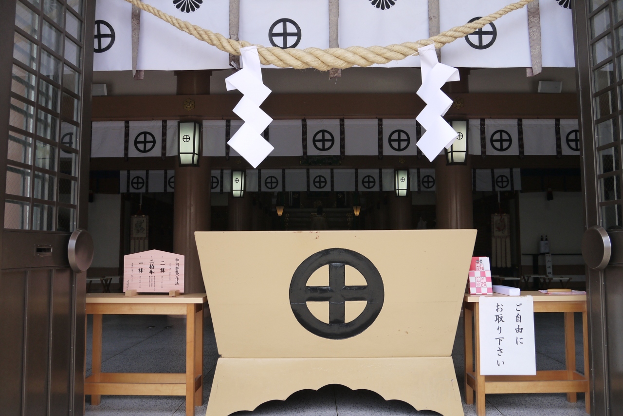 中に入ると至る所に〇に十字の島津家の家紋があり、島津家のゆかりの神社であることが一目でわかります。