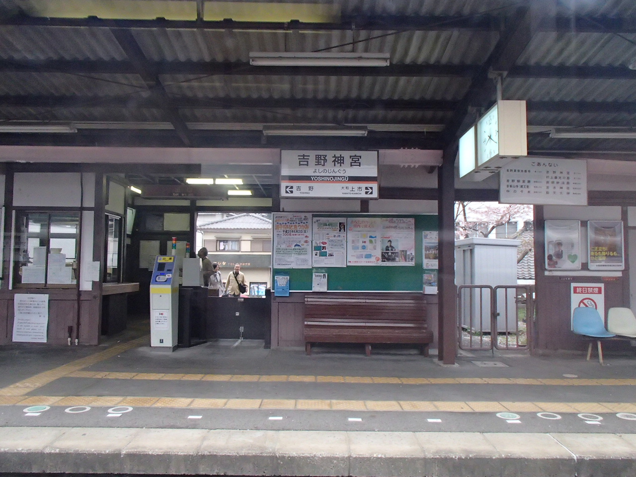 吉野神宮駅(よしのじんぐうえき)は、奈良県吉野郡にあります。近畿日本鉄道の吉野線の駅です。終点の吉野駅の一つ前の駅で、大きな川を渡って車窓から、吉野の街を見る事ができます。ぜひ、一度、見にいってみてください