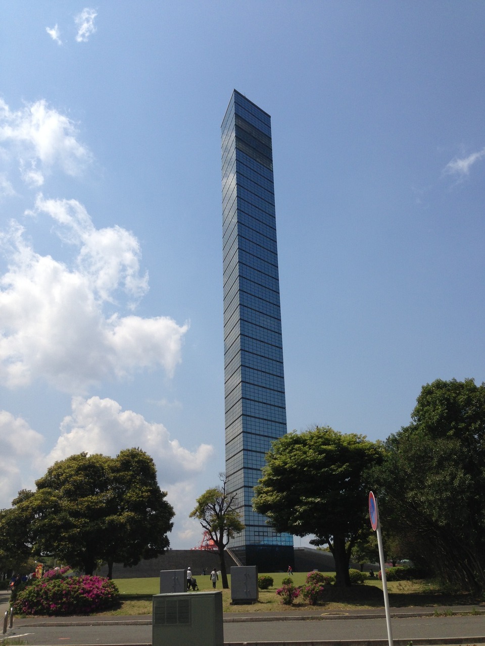 120m位の高さだったと思いますが、ガラス張りの三角柱で、見た目のインパクトがすごいです。