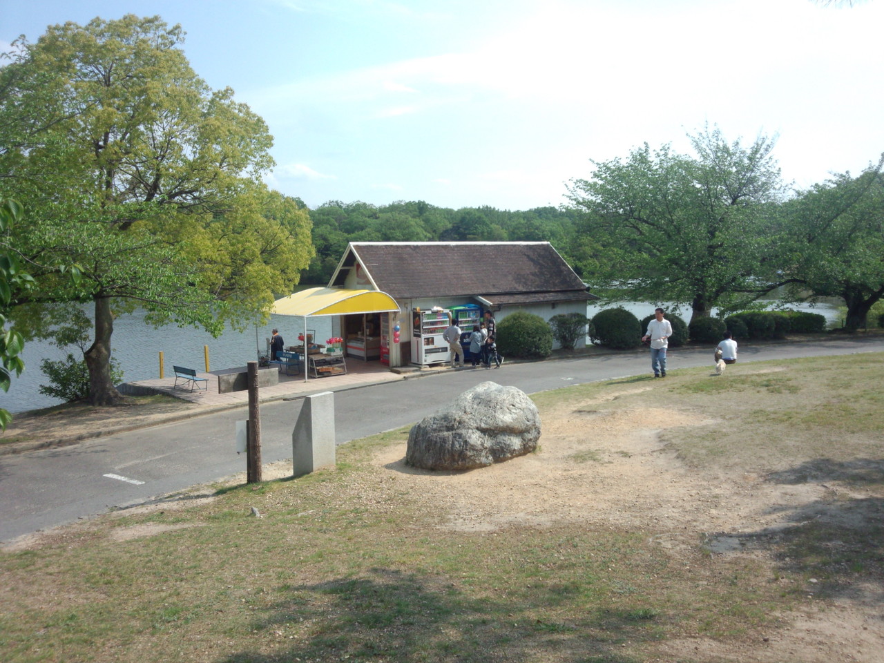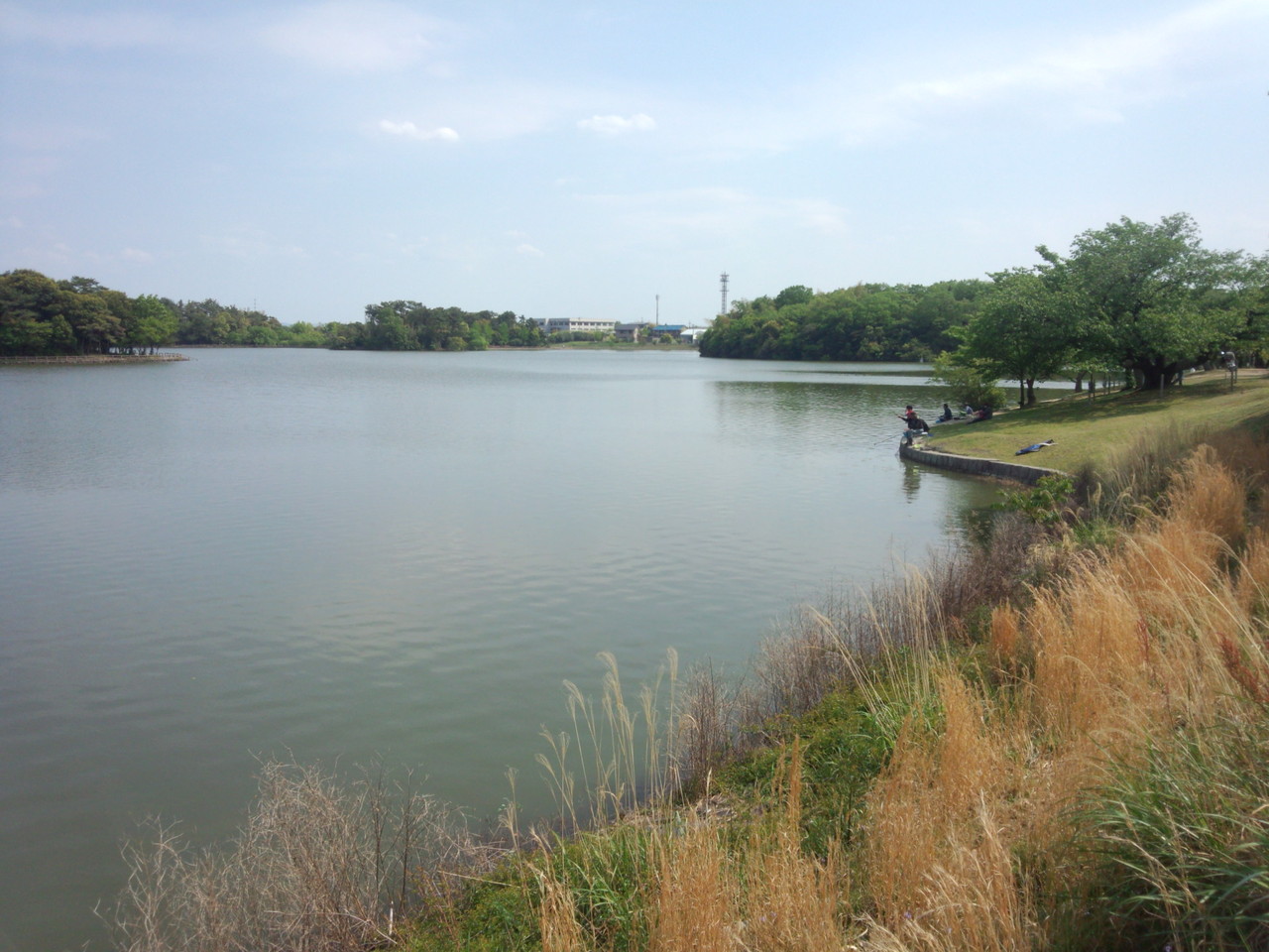 洲原池には2.3kmの散歩道が回っています。散歩道を歩く人、ジョギングする人、池で釣りをする人、遊具で遊ぶ子どもなど様々な人たちが集っています。春は桜の名所でもあります。夏はボードが浮かぶとか。大学と隣接しているので、平日には大学生たちが青春を謳歌しているのでしょうか。