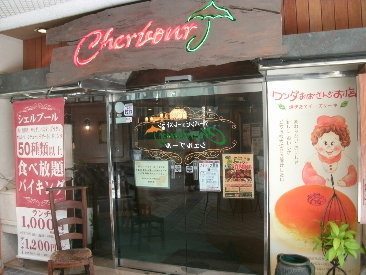 「シェルブール」さんは、沖縄の百貨店“パレットくもじ”の9階にあります。洋食バイキングのお店で、肉・魚料理、サラダ、グラタン、シチューなどのメニューが食べ放題で、お昼は1050円、夜は1260円で頂くことができます。お昼のバイキングを頂きましたが、料理の種類は50種くらいあり、コスパは十分でした。なお、2013年4月27日からは、“沖縄菜園ビュッフェ カラカラ”と言う店に変わるという案内が店内に表示していました。“沖縄菜園ビュッフェ カラカラ”は、沖縄県産野菜やあぐーなど沖縄県産品を使い全部で80種類以上の食材を使った料理が食べ放題というお店なので、期待したいと思います。