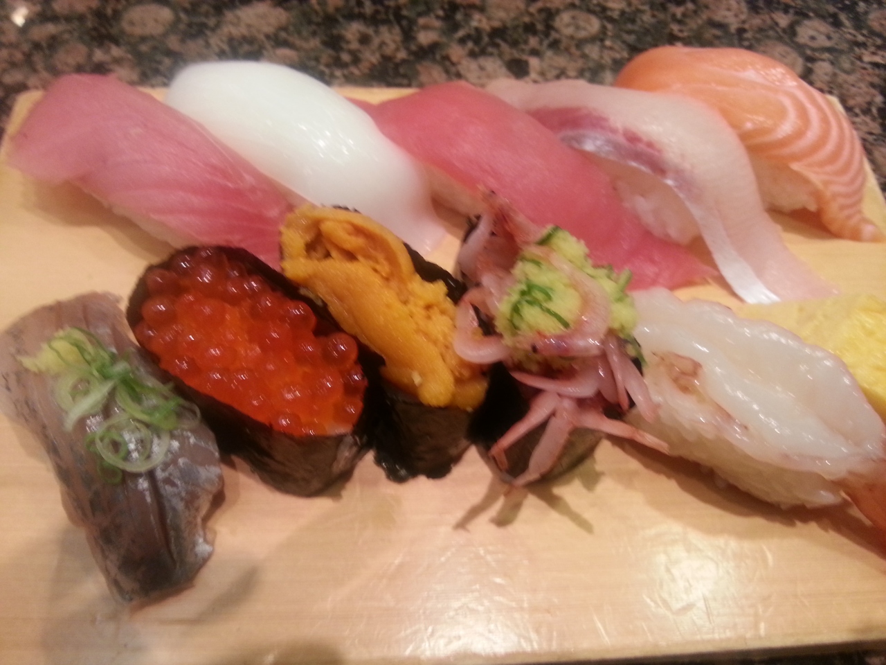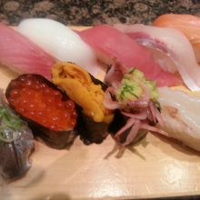 週末の夜に訪問しました。丸ビルの6Fにあるお寿司やさんです。そんなにお値段も高くないので気軽に食べられます。2000円前後のセットを注文しました。他にも2000円前後のセットが何種類かありました。