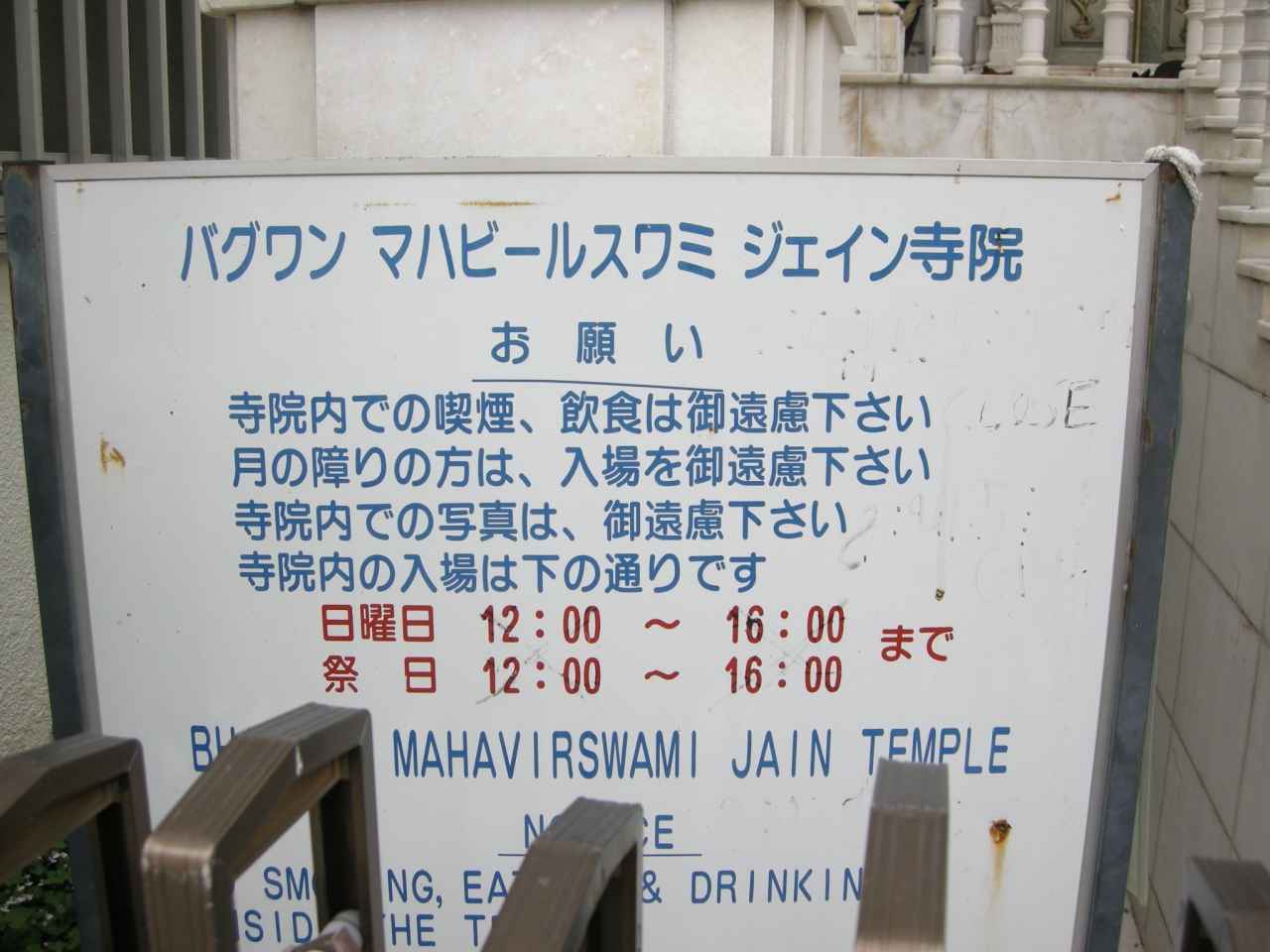 ジャイナ教というのは殺生を禁止している寺院だそうでおそらく日本で寺院があるのはここだけとか。