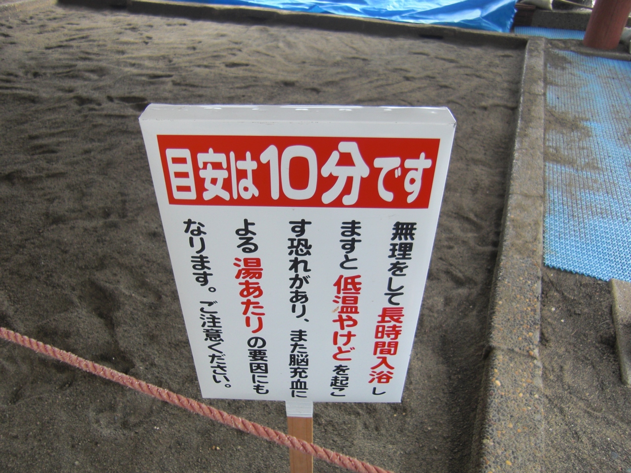 砂蒸し風呂の目安は10分程度のようですが、自分の意志で出られるので良かったです。