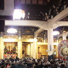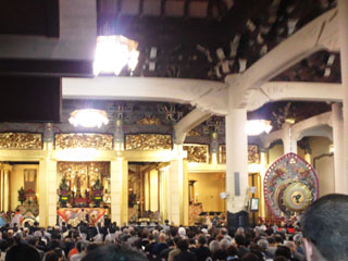 築地の場外市場の先に築地本願寺の印度佛教式の建物が建っています。2013年は親鸞没後750年で、本堂で聖人750回大遠忌法要が行われています。寺院なのにパイプオルガンがあり、建てられた時の時代背景が感じられます。