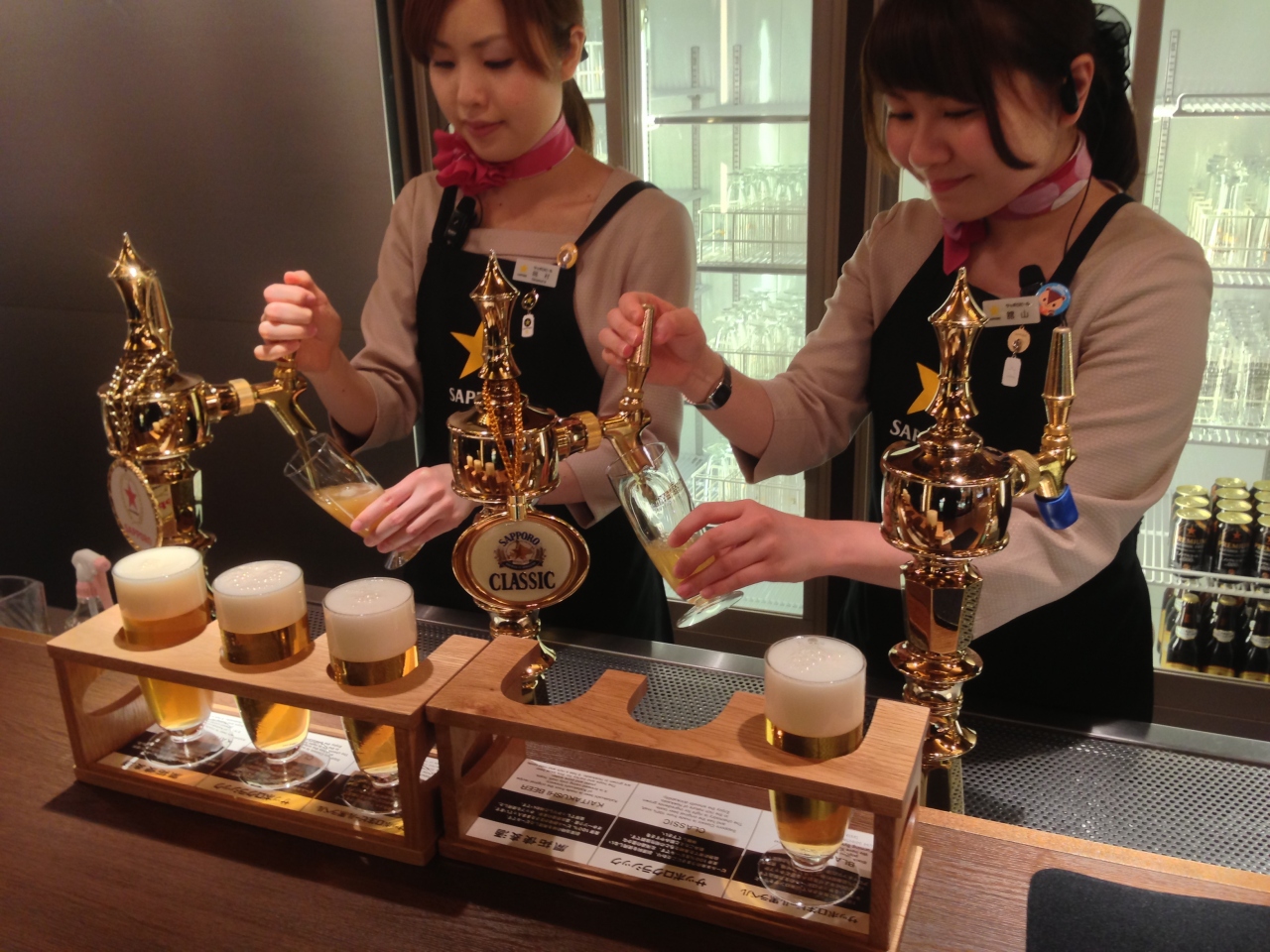 「昔のビール、サッポロ黒ラベル、北海道限定サッポロクラシック」の3つのビールを