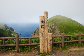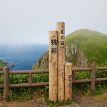 展望台からは「桃岩」と呼ばれる桃の形をした奇岩が見え、天気が良ければ利尻島も見ることができます。