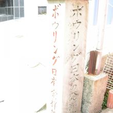 ここもそのひとつでしょうか、ボウリング発祥の地碑が道端にありました。