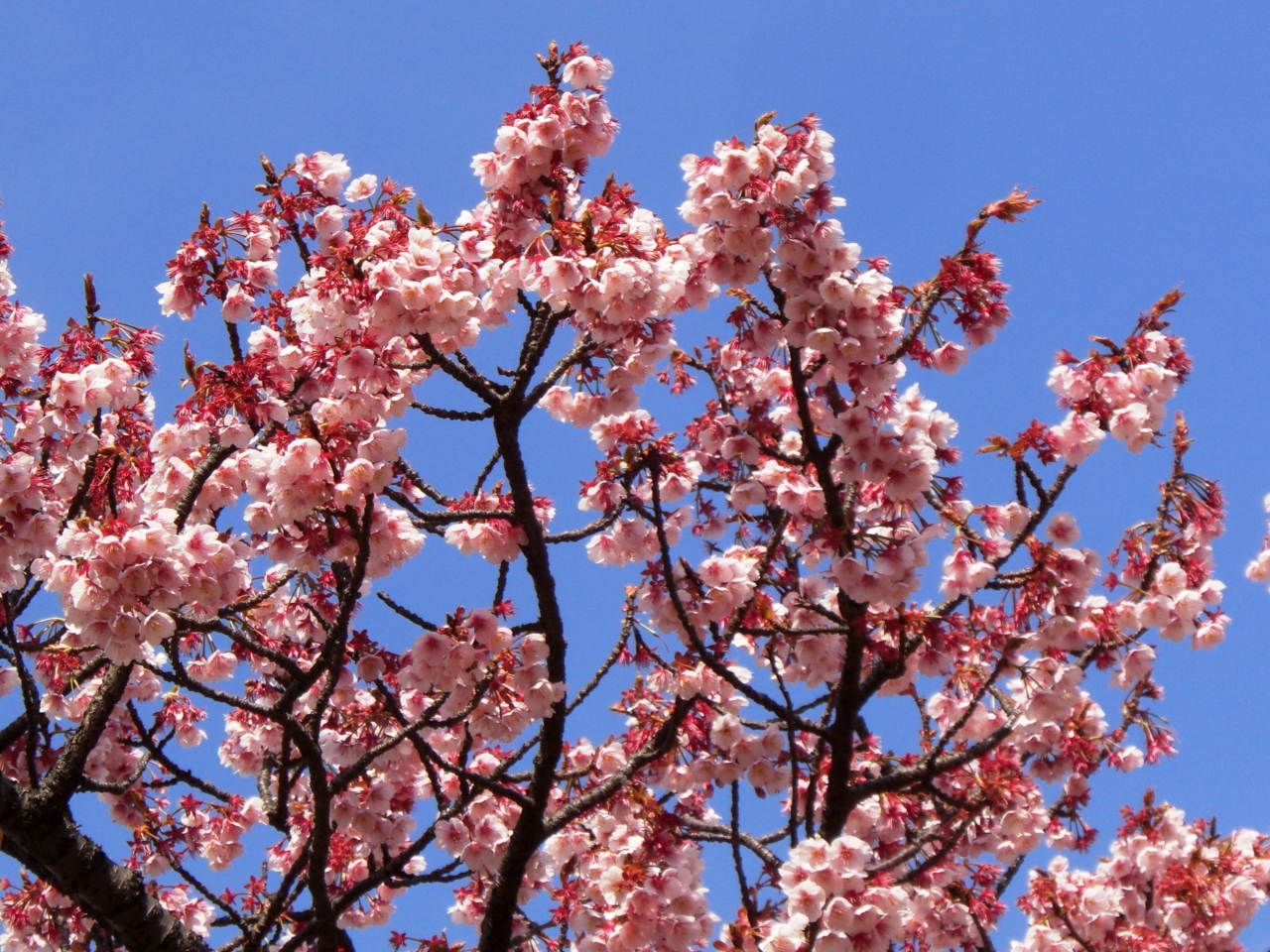 日本一早い桜がみれるということで、2月に熱海桜を見に行きました。熱海駅からは徒歩でのんびり20分くらい。行きは下り坂なので楽です。細い川沿いに見事に濃いピンク色の桜が満開でした。さすがに休日だと観光客が多く、ベンチも満席で、のんびり散策するには平日の方がおすすめです。