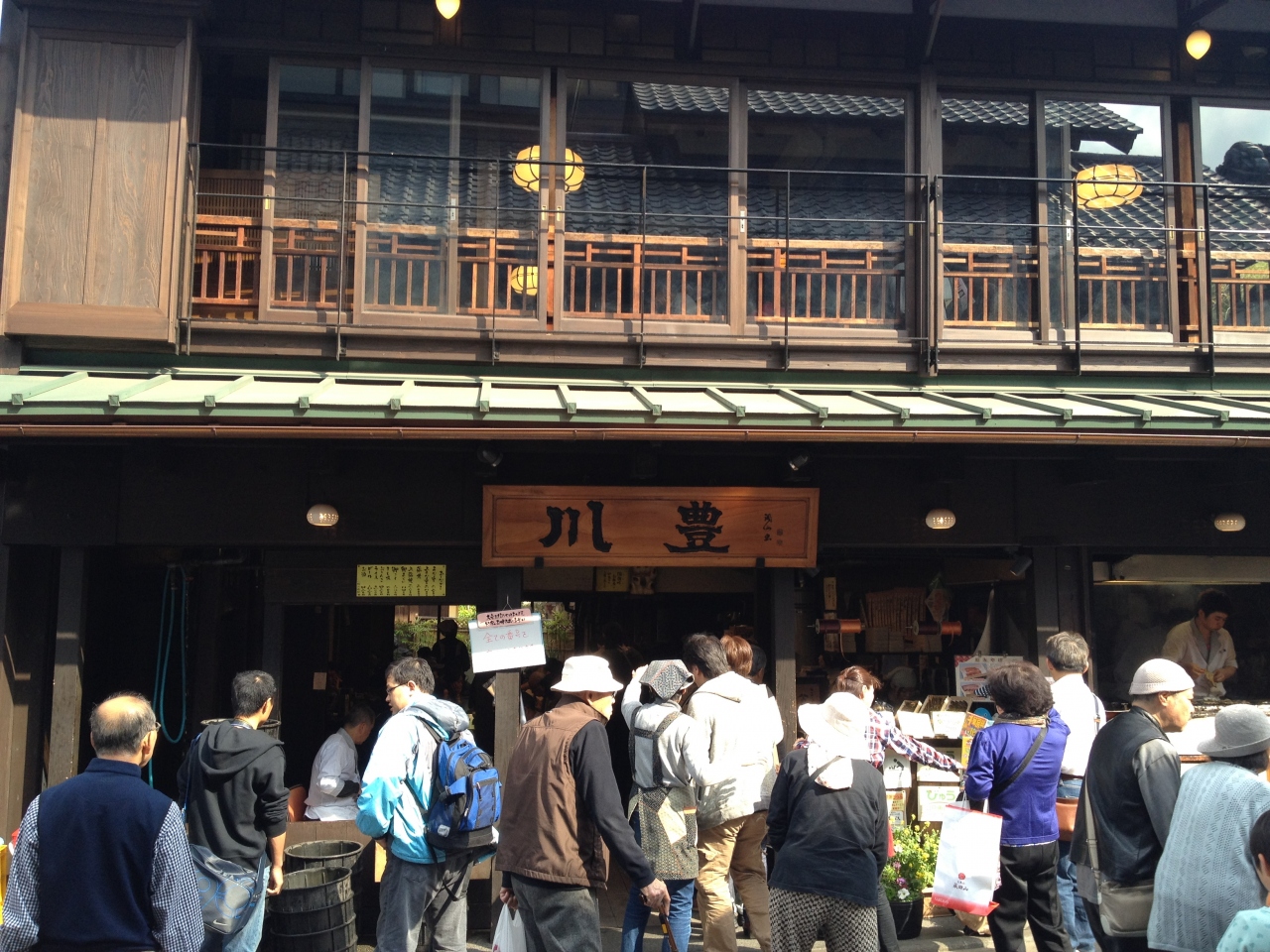GWに伺いました。成田山の参道にある人気のうなぎのお店。店先でうなぎを捌いています。店先でうなぎを捌いているお店は何件かありますが、事前に調べて評価が良かったので川豊さんに行きました。