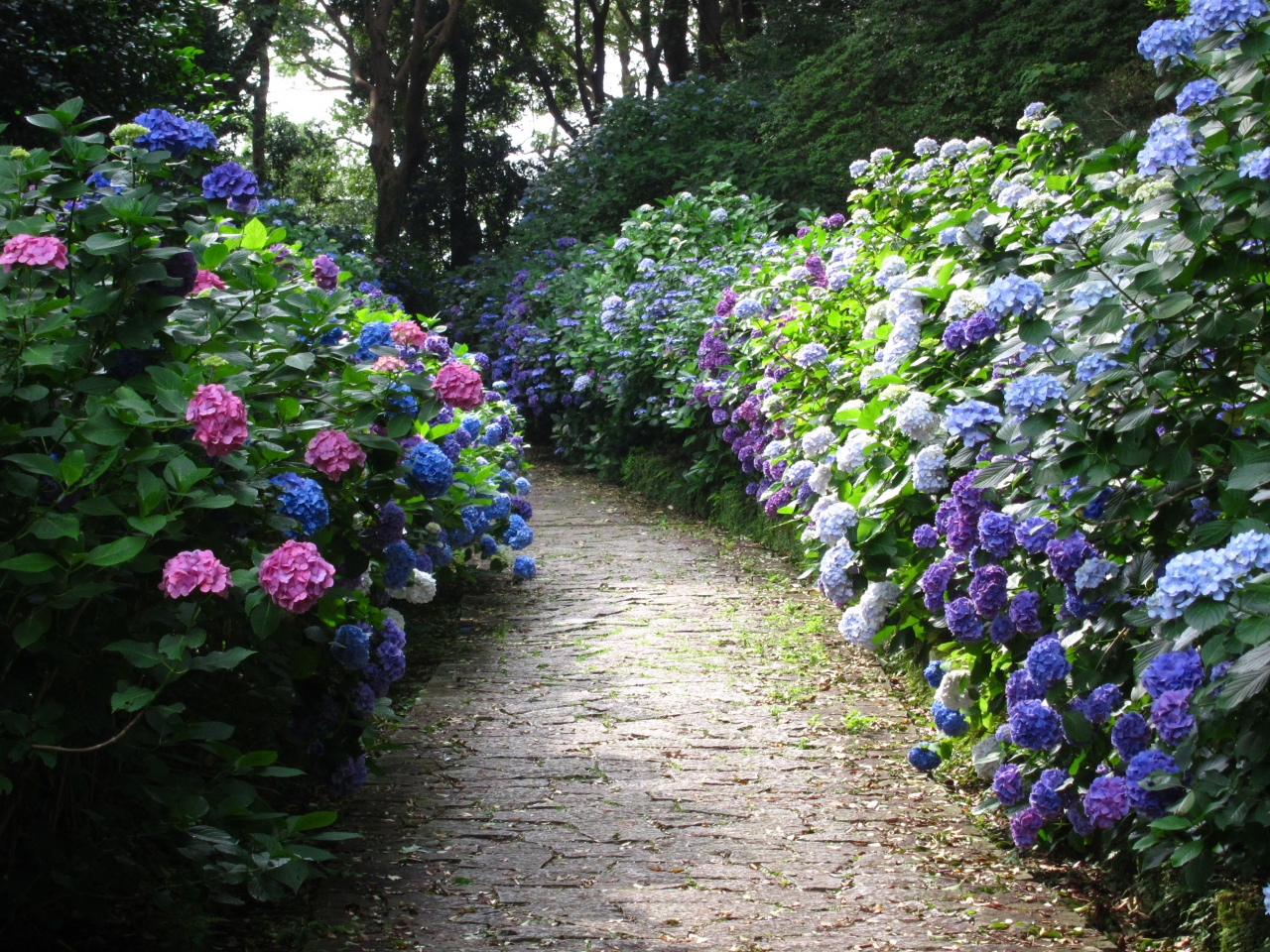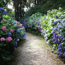 紫陽花まつりの開かれている6月に行きました。公園内に車の乗り入れは出来ませんが、臨時駐車場があります。公園の坂道を登ると側面に紫陽花が満開です。さらに紫陽花園まで行くと辺り一面紫陽花が群生しています。人の少ない早朝ががお奨めです。