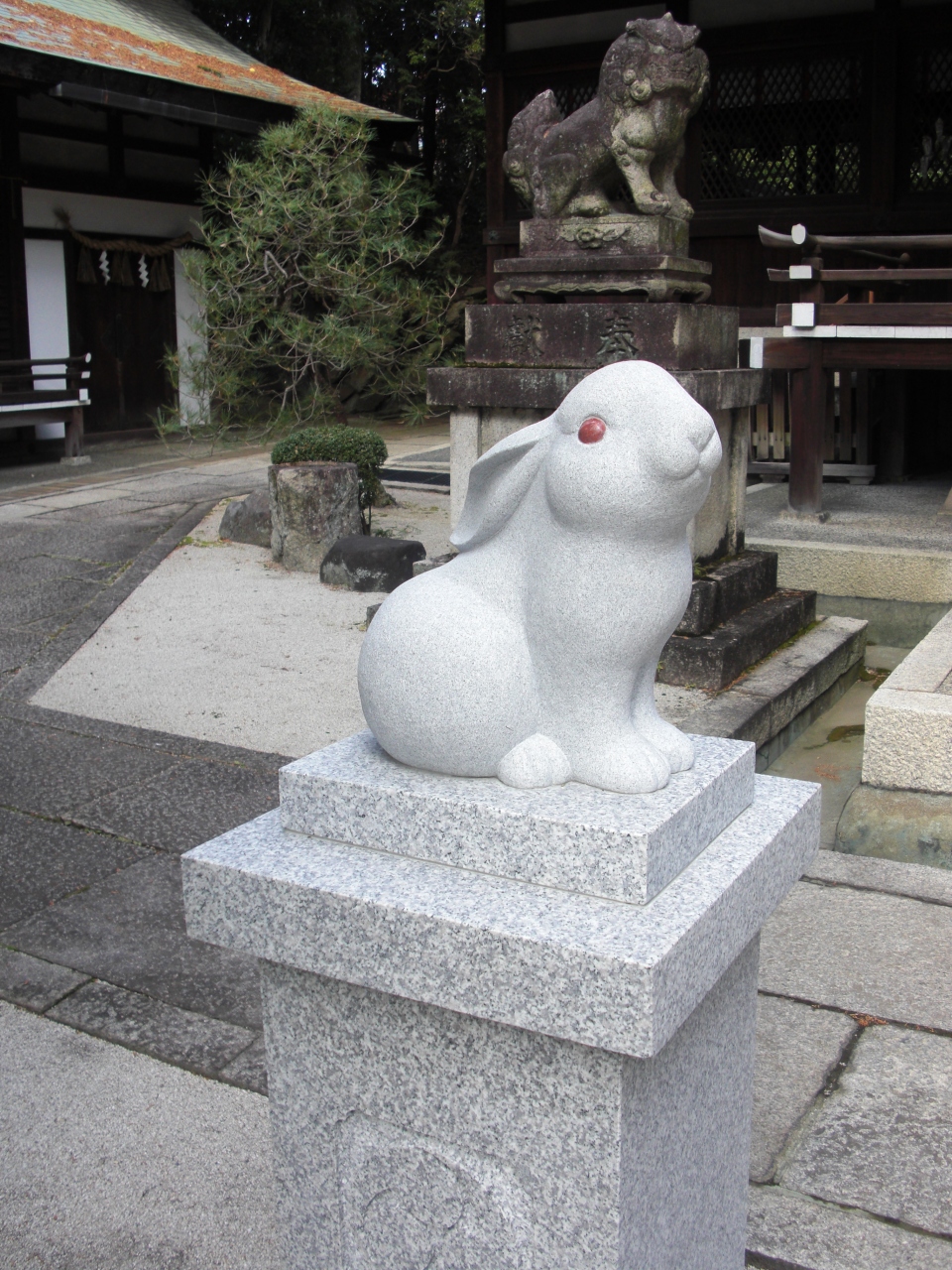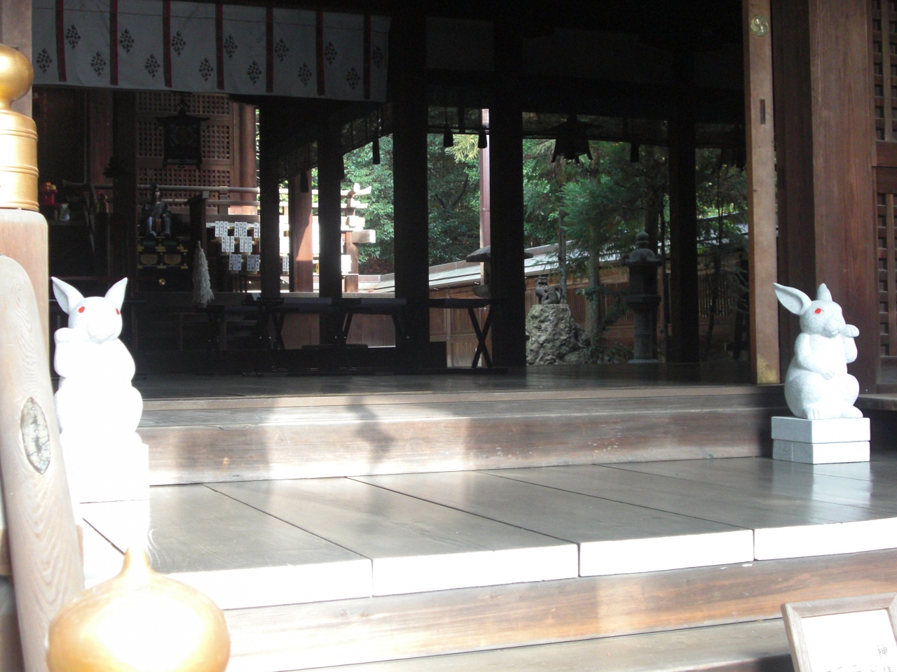狛犬ではなくこちらの神社には狛兎がいらっしゃいます。境内には兎を模った細工のものがところどころあり、見つけると嬉しくなります。安産、子授けの神様ということと可愛い兎が神使ということもあり女性の参拝者の方がたくさんいらっしゃいました。