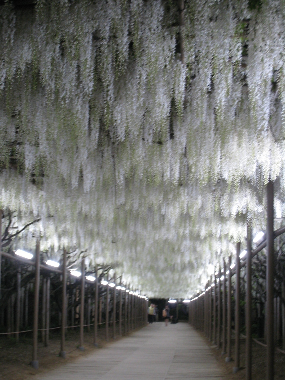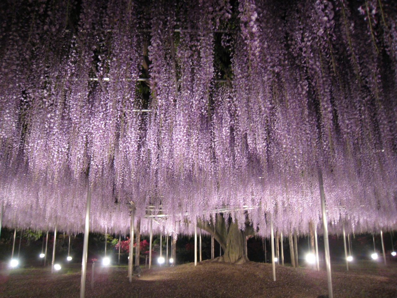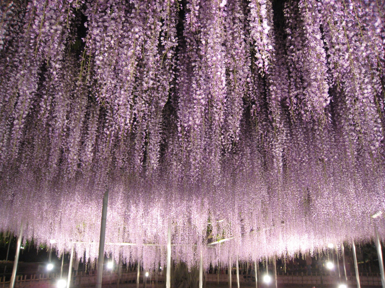 毎年満開の時期は異なると思いますが、私が行った時はGW中が満開でした。行った時間は夜の8時近くだったため混雑もしておらずゆっくり見ることができました。夜だったため高速を降りてから案内看板が見つかりませんでしたが、カーナビがあれば大丈夫でしょう。ここの大藤は個人邸宅にあったものを移植したものと聞きます。ほんとに立派な大藤です。夜のほうがきれいだと思います。