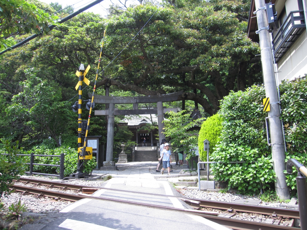 鳥居のすぐ前を江ノ電が走っていくので撮影スポットになっていますが