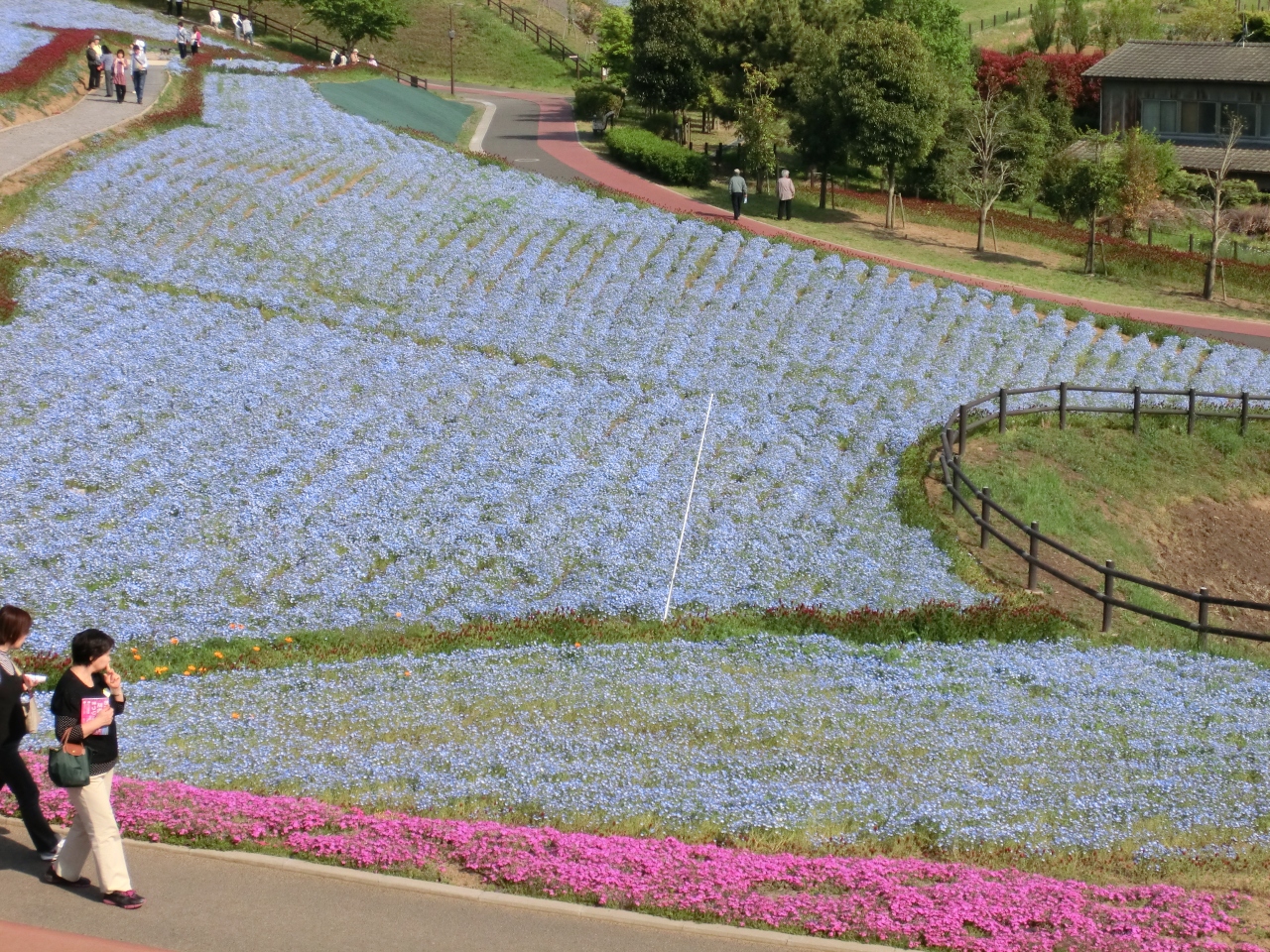 花のじゅうたんが広がるこの公園は、ことも用の滑り台があり、広い園内をたくさんの子供が楽しそうに遊んでいました。