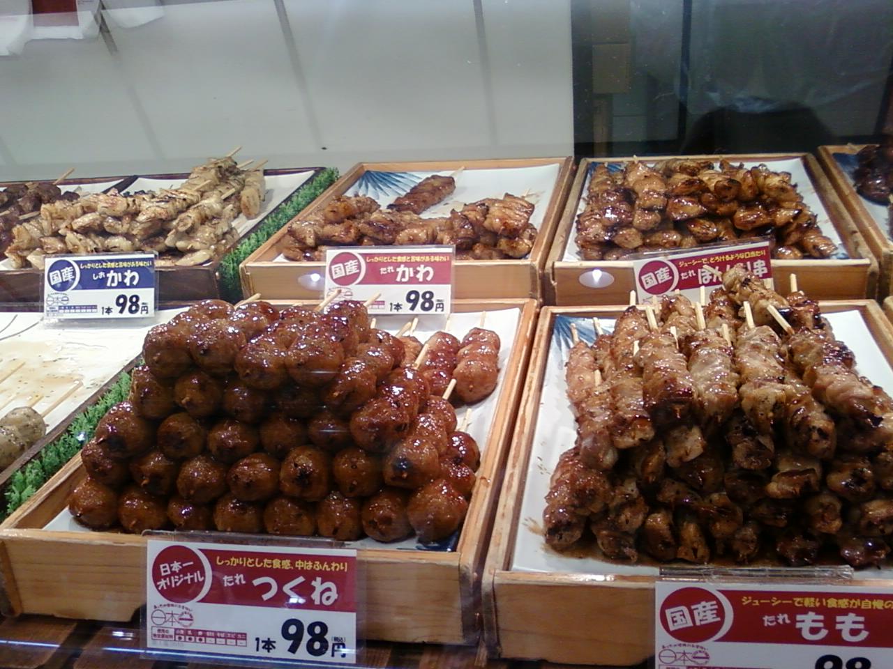 ここの日本一はJR大船駅に連結している、ルミネの2階にあります。やきとりの専門店で、おいしいそうな焼き鳥が数種並んでいます。ここでの一押しはぼんじりという、尾っぽに近いほうのお肉です。だいたい1本98円のものがほとんどですが、ちょっとお肉の量が少ないかな?味は満足度高いです。