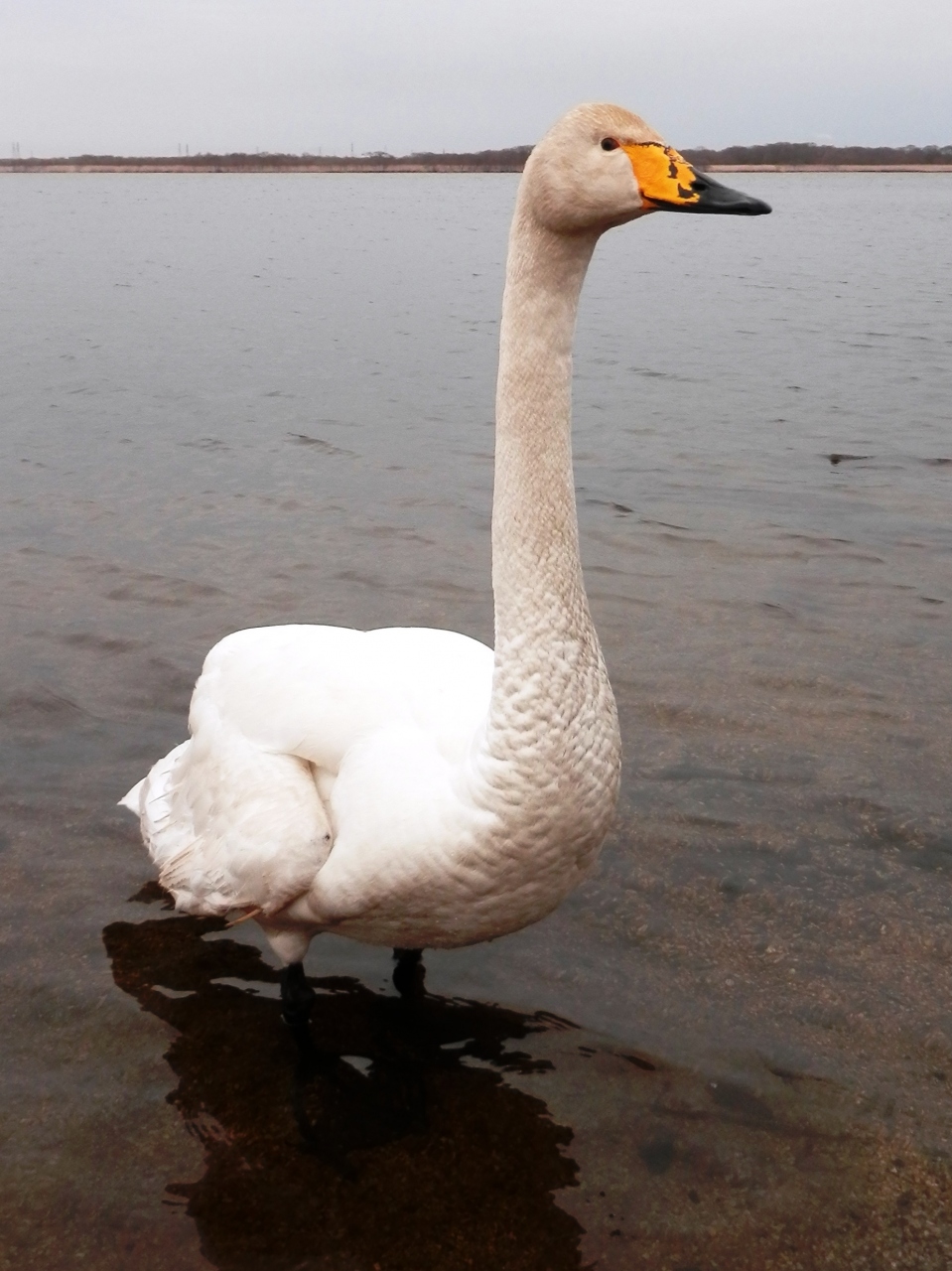 レンタカーを返却に行く途中でウトナイ湖の看板を発見して立ち寄りました。17時過ぎていたので残念ながらネイチャーセンターを見学は出来ませんでした。湖畔ではひとり営業の白鳥が出迎えて呉れました。人に慣れきっていて餌を無心しましたが餌やり厳禁の立て看板があり、心を鬼にして餌はやりませんでした。