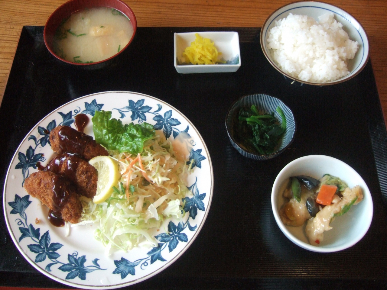 メンチカツは半分に切った物が3つと??あとの1つはいずこに・・