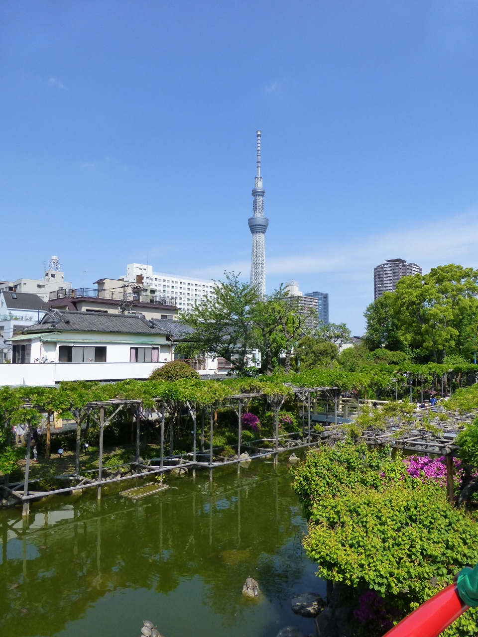 ちょうど亀戸梅屋敷に来るタイミングで藤まつりをやているということでちょっと足を延ばしました(徒歩10分).2013年5月3日でもう花は終わりかで,藤棚はあまり楽しめる感じではありませんでしたが,お参りもしてちょうどよい散歩になりました.スカイツリーからの都営バスで至近なので,一緒に観光するとよいのではないかと思います.