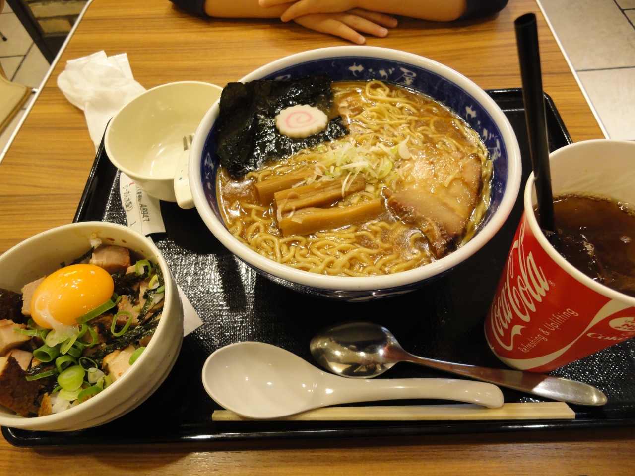 アソボーノの目の前にあるフードコートに入っているので、子連れでも入りやすいです。水曜日のレディースデーだったので、飲み物がサービスでした。