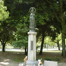 平和記念公園は被爆する前には、大勢の人が暮らす市街地だった場所。この平和乃観音像のあたりは、中島本町という町で、住民はほぼ全滅、458人が犠牲になり、町は消滅します。わずかに生き残った町民による中島本町会のメンバーが失われた町への思いと記憶を永遠に伝えようとするものだそうです。
