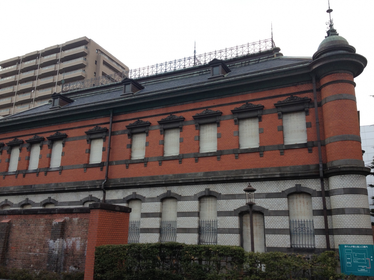 1階が磁器白タイル、2階が赤れんが、壮麗で素晴らしいです。