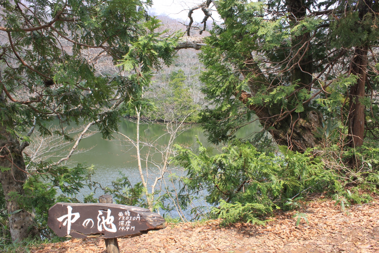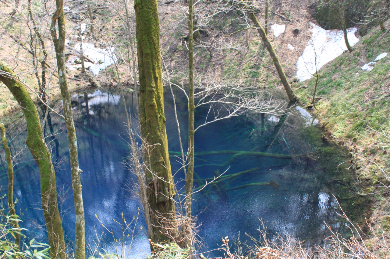 青池は美しい濃紺の湖水をたたえていました、神秘的ですね。