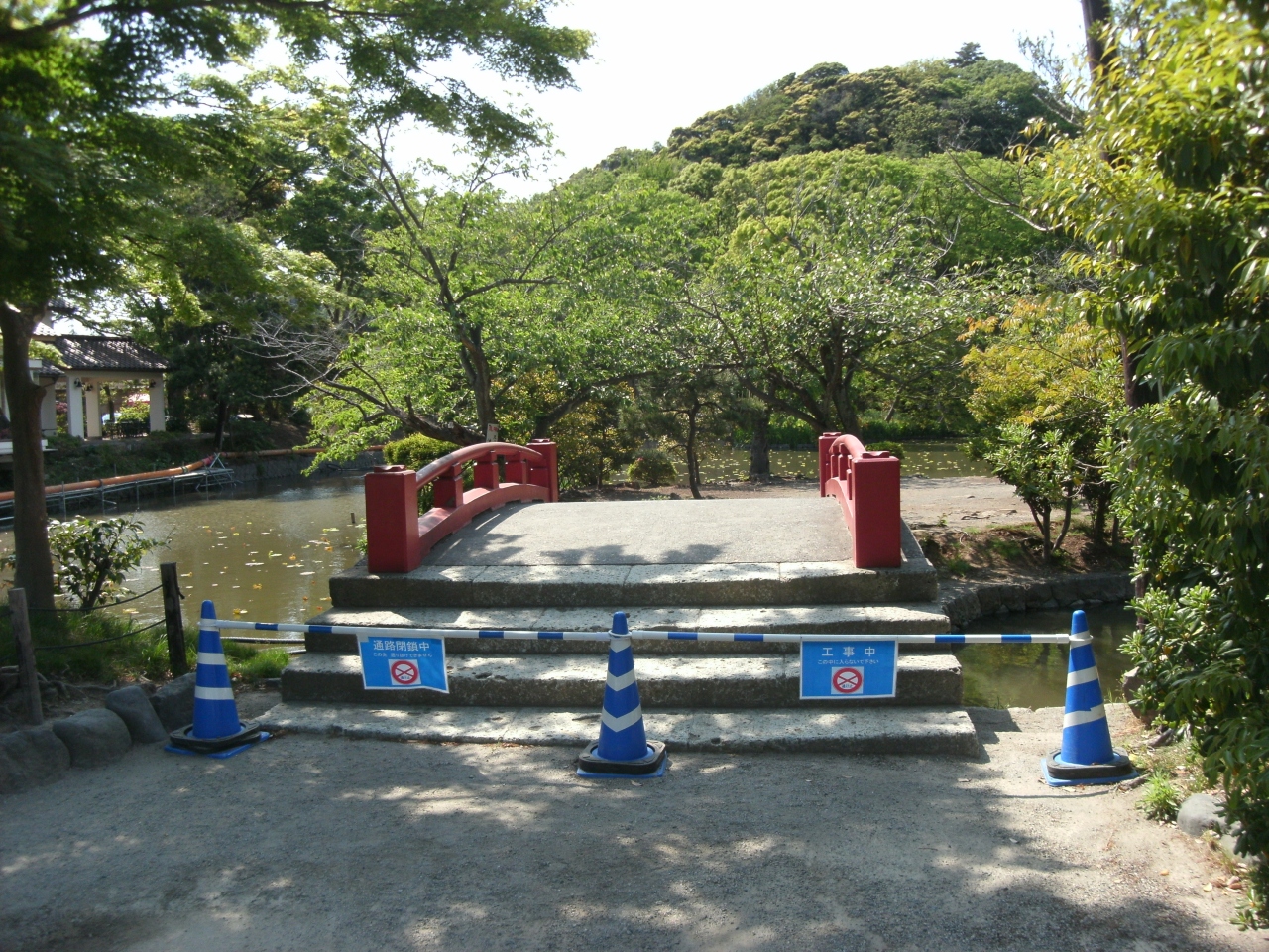 源氏池・平家池とも2013年5月現在、浚渫浄化工事中です。残念ですが水面景観ありません。ブルトーザー、工事に携わってる人を見ることできますが・・。