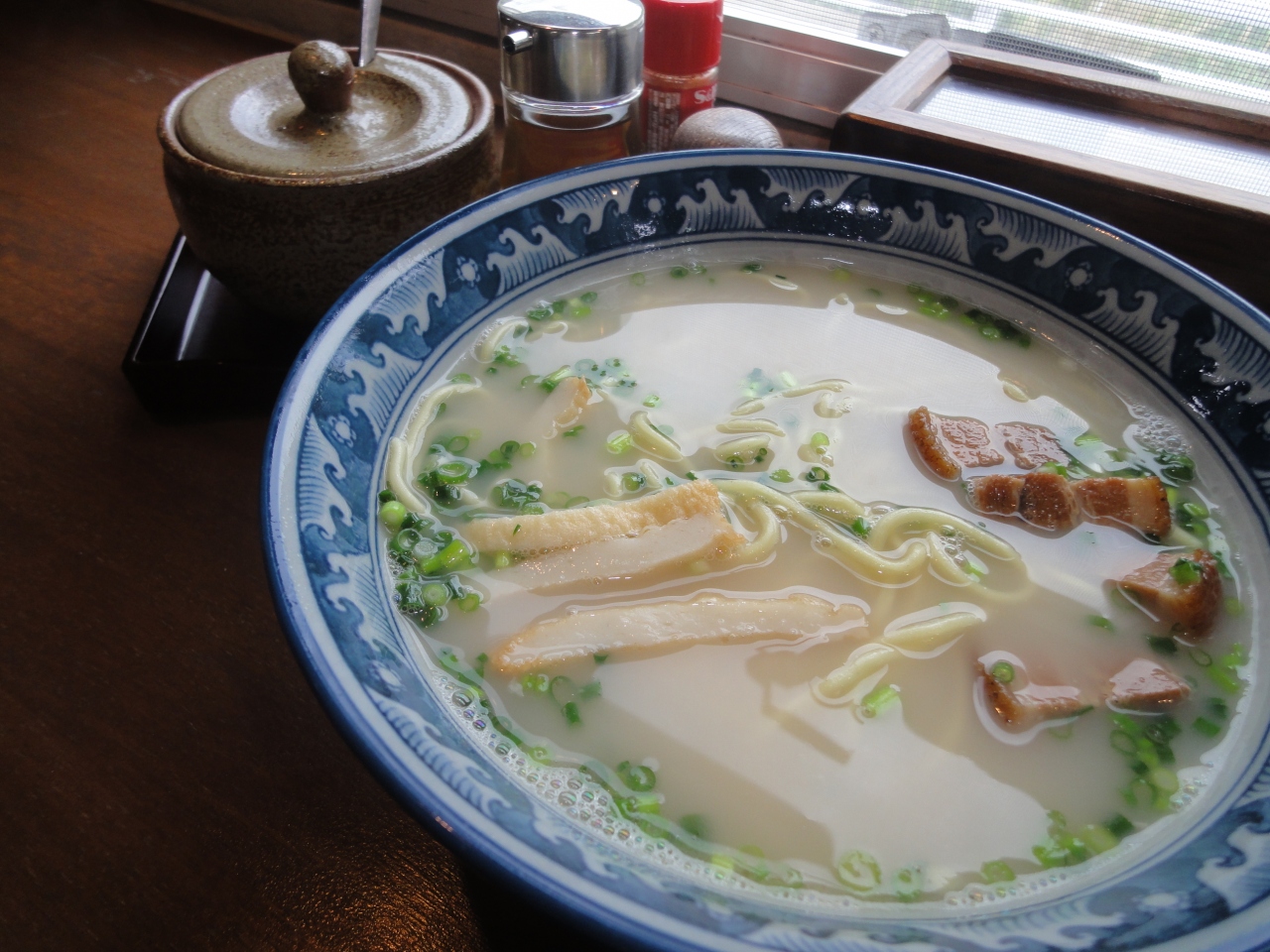 八重山そばはとんこつスープのような、ちゃんぽんのような、でも見た目よりあっさりしていておいしい。