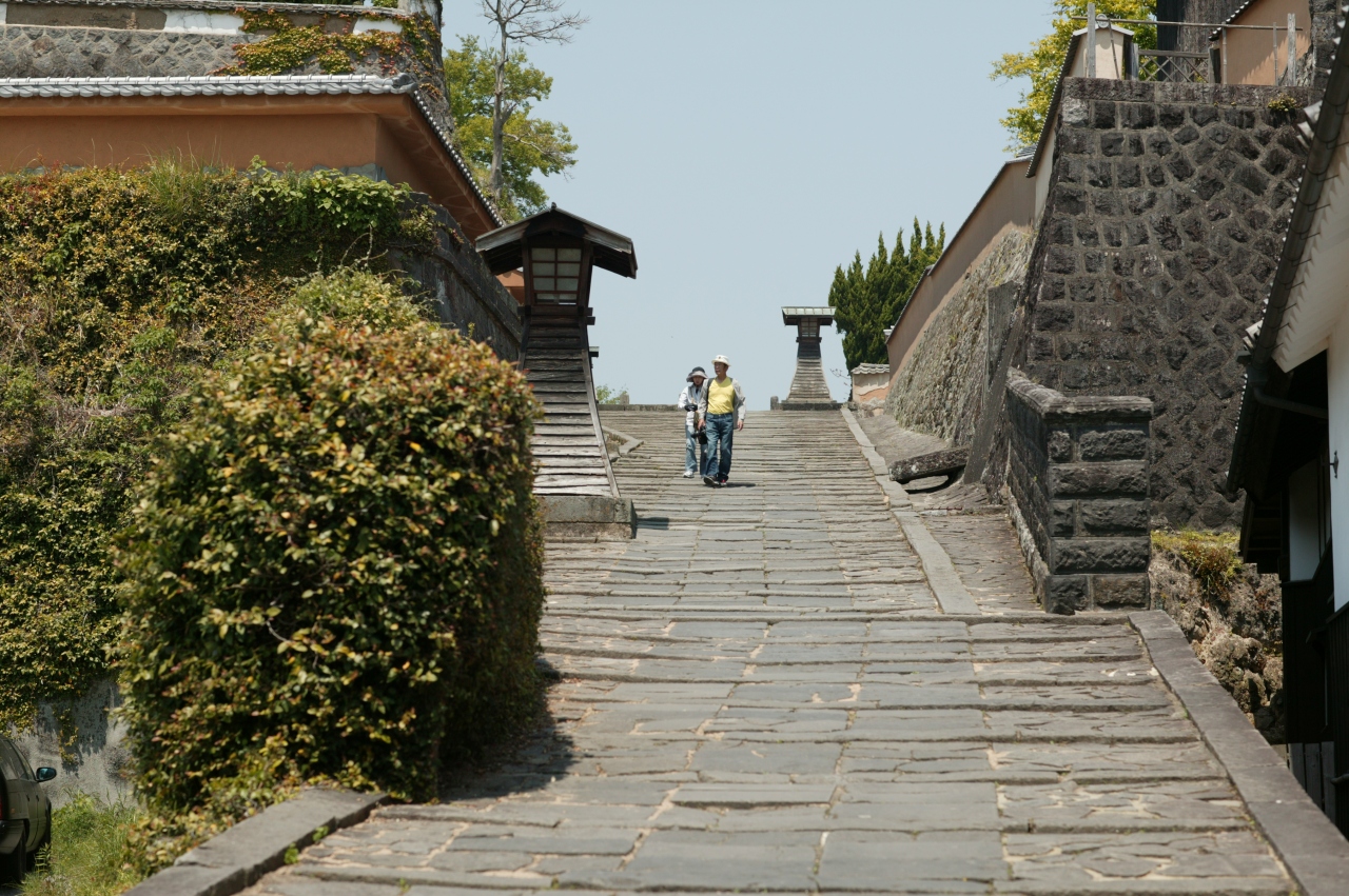 この町は二つの丘に武士が住んでいて真ん中の谷間に商人が住んでいたということだそうです。その南の丘にある武家屋敷に行くのにこの坂を上っていきます。見晴らしがいい坂で南台にもおおくの武家屋敷が並んでいました。