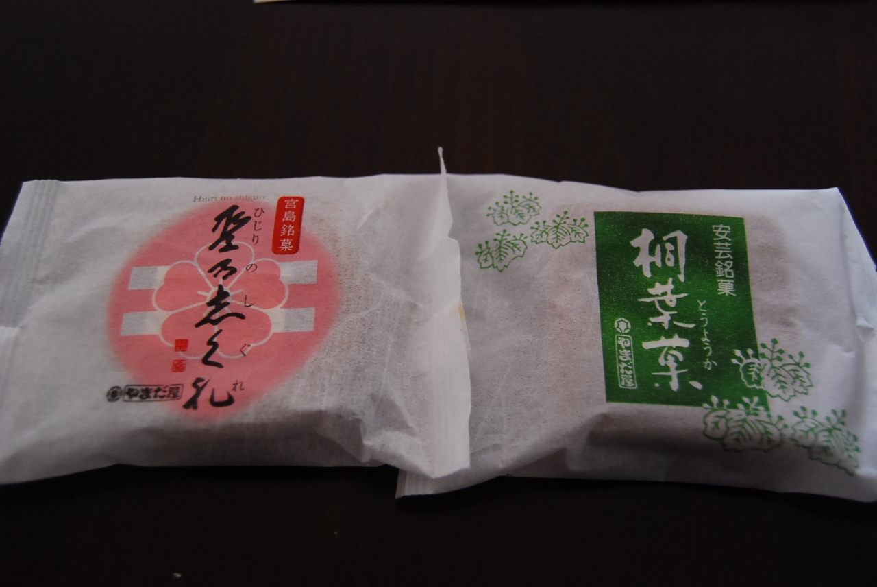 もみじ饅頭はできたては美味しかったですが、やまだ屋の「桐葉菓」は牛皮が入っていて抜群においしいです。おみやげに「ひじりのしぐれ」とセットで買ってきました。箱代なのか、箱に入っている方がバラ売りより高いです。