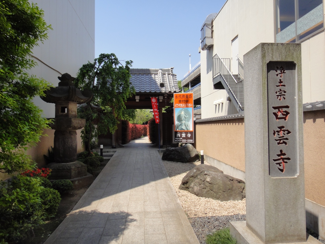 川越西雲寺 入り口に古そうな石燈籠?