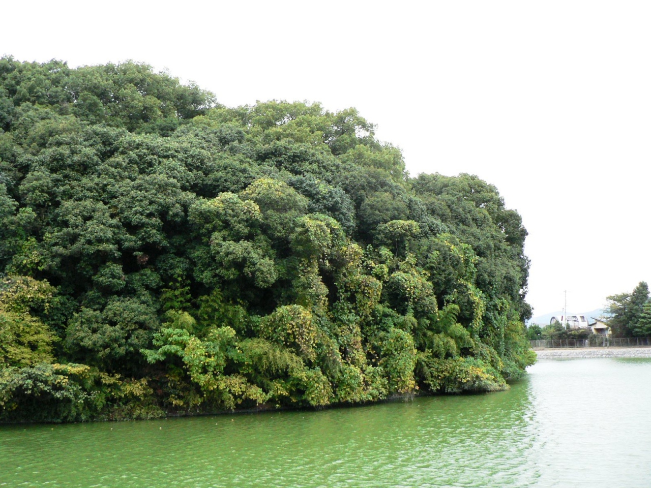 軽里大塚古墳・白鳥陵は古市古墳群の南部、白髪山古墳の北東にあり全長約190m、後円部径約106m、高さ約20m、前方部幅約165m、高さ約23mで古市古墳群で7番目の大きさ。墳丘は三段築成で前方部を西に向けくびれ部の両側には造り出しがあり周囲には幅約35mの周濠と上面幅21mの堤がめぐらされている。