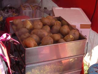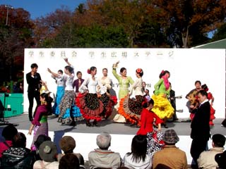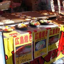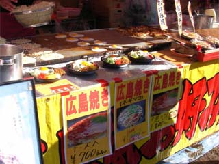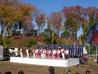 高尾駅から浅川を渡った先の陵南公園本園は、八王子いちょう祭りのメイン会場で、地元の大学生のステージでフラメンコを踊っていて、奥のグランドでは、よさこいソーランと近隣観光物産展をやっています。小菅村の高菜まんじゅう(130円)と、北海道じゃがバター(250円)を食べて、御陵参道に戻ると阿波踊りもやっています。