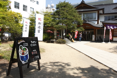 なわて通りを歩き四柱神社にお参りした時、社務所の横にある赤い傘に惹かれて、善哉でも食べようと入りました。中はとてもお洒落な和風のテーブルクロスや、木がふんだんに使われた室内装飾があまりに素敵で驚きました。