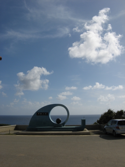 喜屋武岬に立つ慰霊の塔