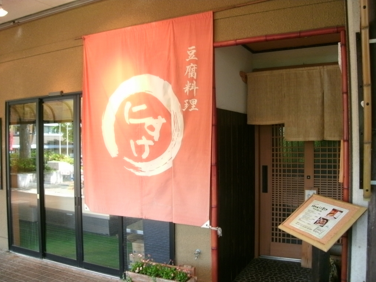 「豆腐料理にすけ」さんは、洛西ニュータウンの西陵中学校の北の“飲食ゾーン”の中にあります。豆腐の販売と豆腐料理を専門にやっておられるお店です。豆腐は、もめん150円、絹ごし130円、おぼろ(中)150円、厚揚げ140円など、スーパーなどで販売されるものに比べ、若干高めですが、滋賀県産の大豆を使っていると言う、豆の味は濃くてしっかりしており、流石に豆腐専門店だけあるというパフォーマンスです。豆腐やアゲの他に、ゆばなどの販売もあります。食事のほうは昼のみの営業(11:30~14:00)で、豆腐を主体にしたランチが頂けます。
