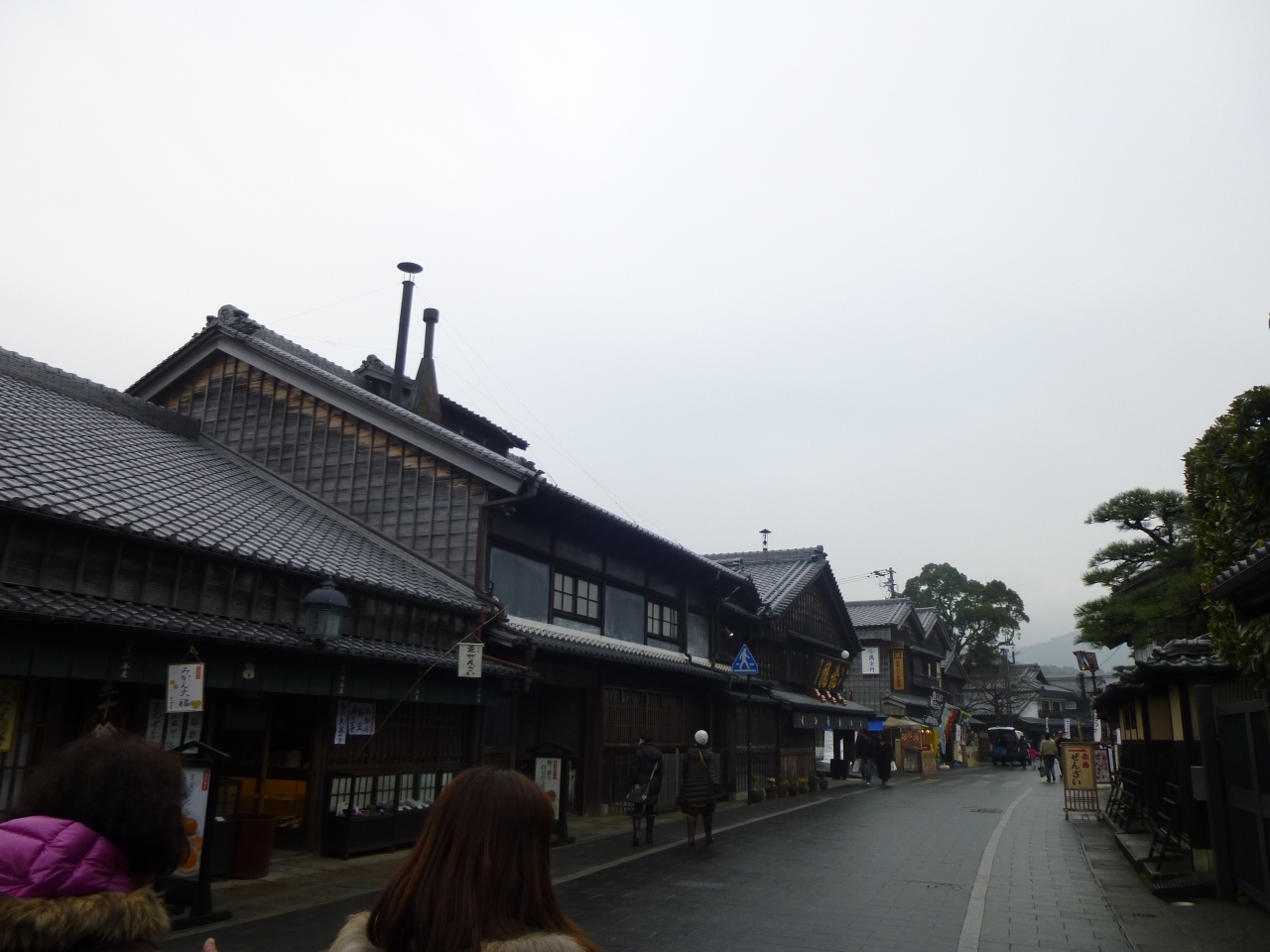 伊勢神宮の内宮前から石畳の通りです。お土産物や飲食店が並び、参拝後はこちらで楽しめます。土曜日の昼頃はかなりの人出で賑わってました。有名な赤福や伊勢うどんのお店、松阪牛の牛串などの販売されてます。街並みはレトロな雰囲気があり伊勢神宮とマッチしてました。