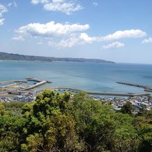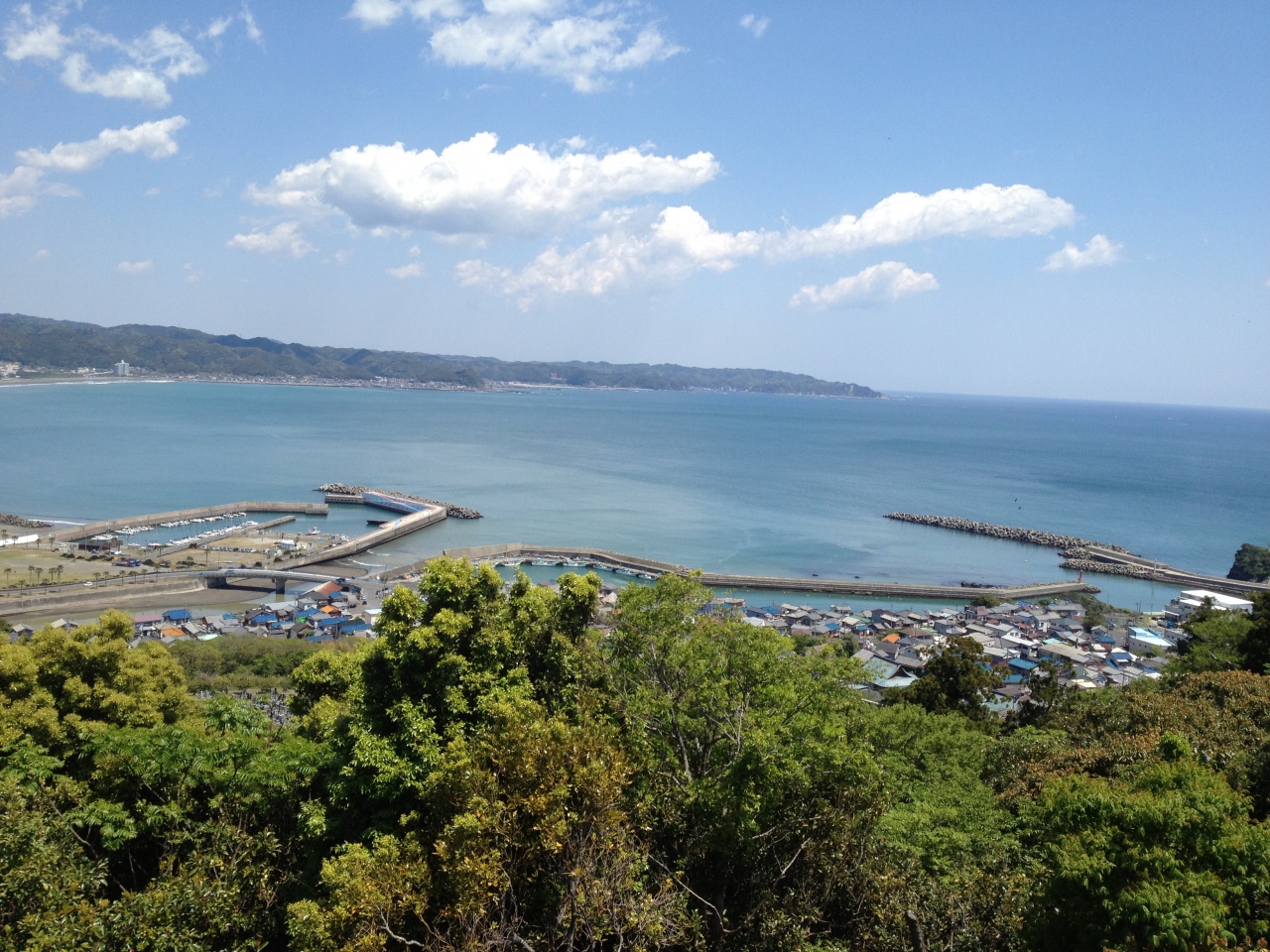 頑張って上がった先には、見上げていた女神様の目線で鴨川のキラキラ光る美しい青い海を遠くまで見渡すことができます。