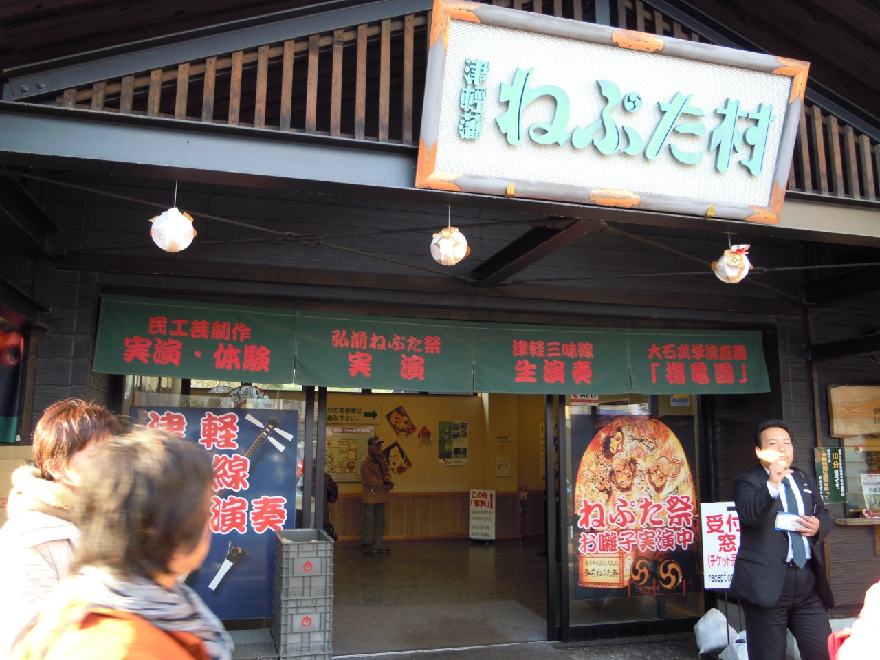 青森県弘前市の弘前公園の北東側向かいにある観光施設がここ「津軽藩ねぷた村」。ここは津軽地方の各種民工芸品の製作実演、体験、津軽三味線の生演奏など、さらに津軽地方の特産品などのお土産品(りんご関連も)もありますね。弘前公園に花見のあとには立ち寄って津軽に関するさまざまなものをみて、買って、食べてはいかがでしょうか。