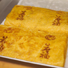 亀戸天神の境内内にある和食懐石の料理店「若福」のその場で焼いた卵焼きはほんのり甘くて、ふんわりとしていて、冷めても美味しい厚焼き玉子です。店先で焼いているので職人さんの手さばきを見れる時もあります。大1,400円、小700円亀戸天神土産にピッタリです。